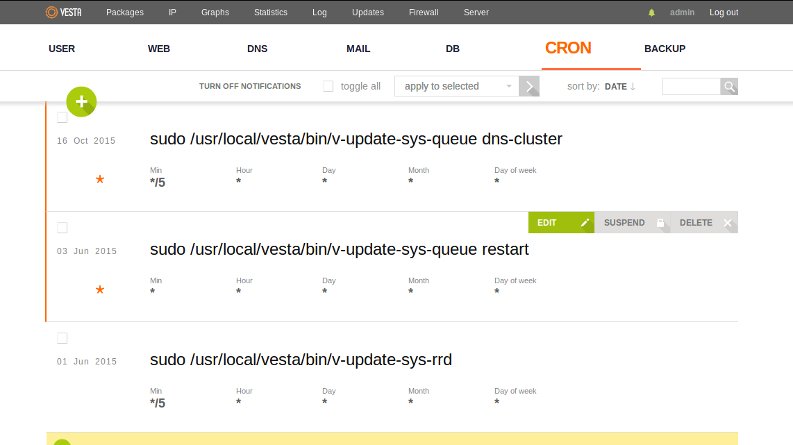 A cron job is a Linux command used for scheduling tasks that are to be executed. Create and modify Cron Jobs by using the template (Pattern, Time, Command) to schedule and run scripts at a specific time.