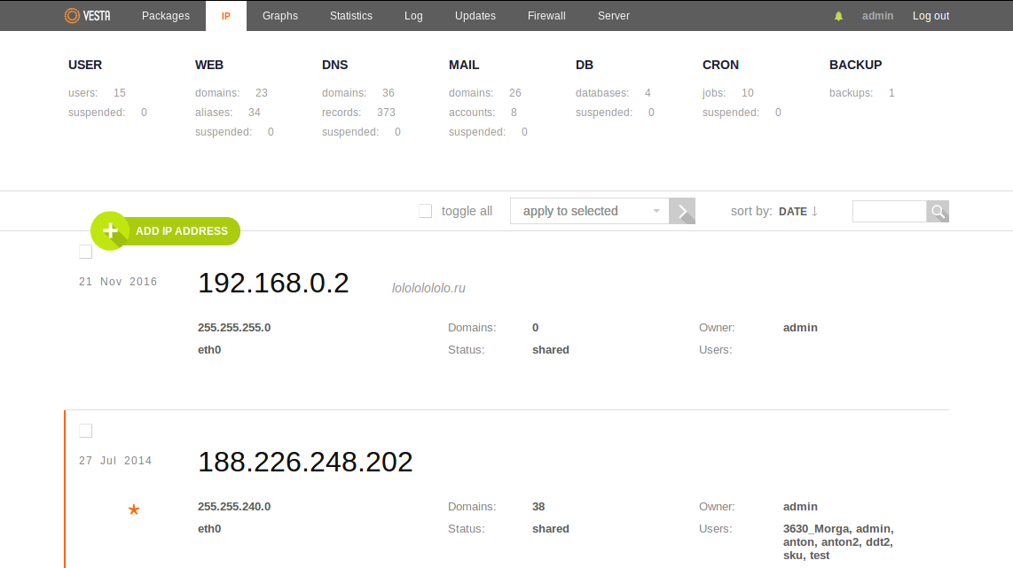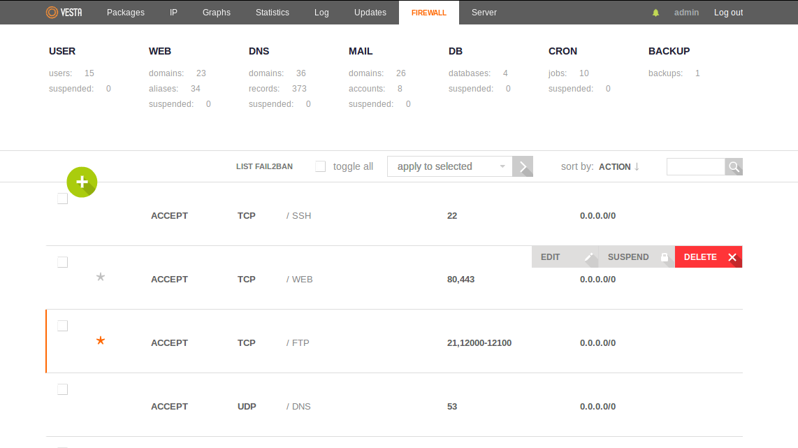 Add firewall rules to allow IPs to access services like SSH, FTP, MySQL, or other services. Protect your server from unauthorized access. A WAF is also coming soon as part of Vesta 2.0.